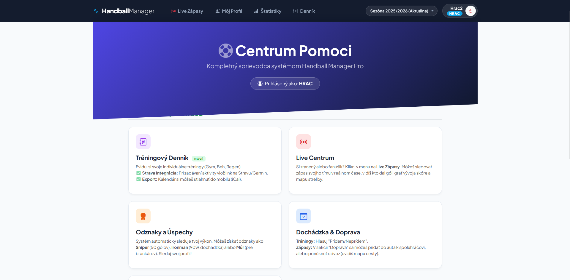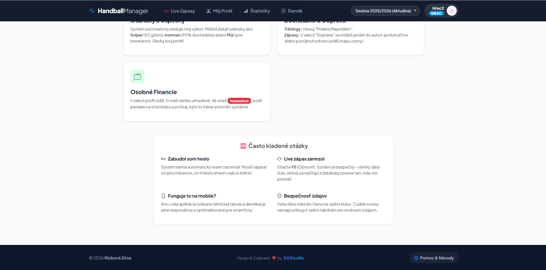 Moderný systém, ktorý hráči milujú. Sleduj štatistiky, spravuj dochádzku a zbieraj odznaky. Takto vyzerá profesionálny klub v 21. storočí.