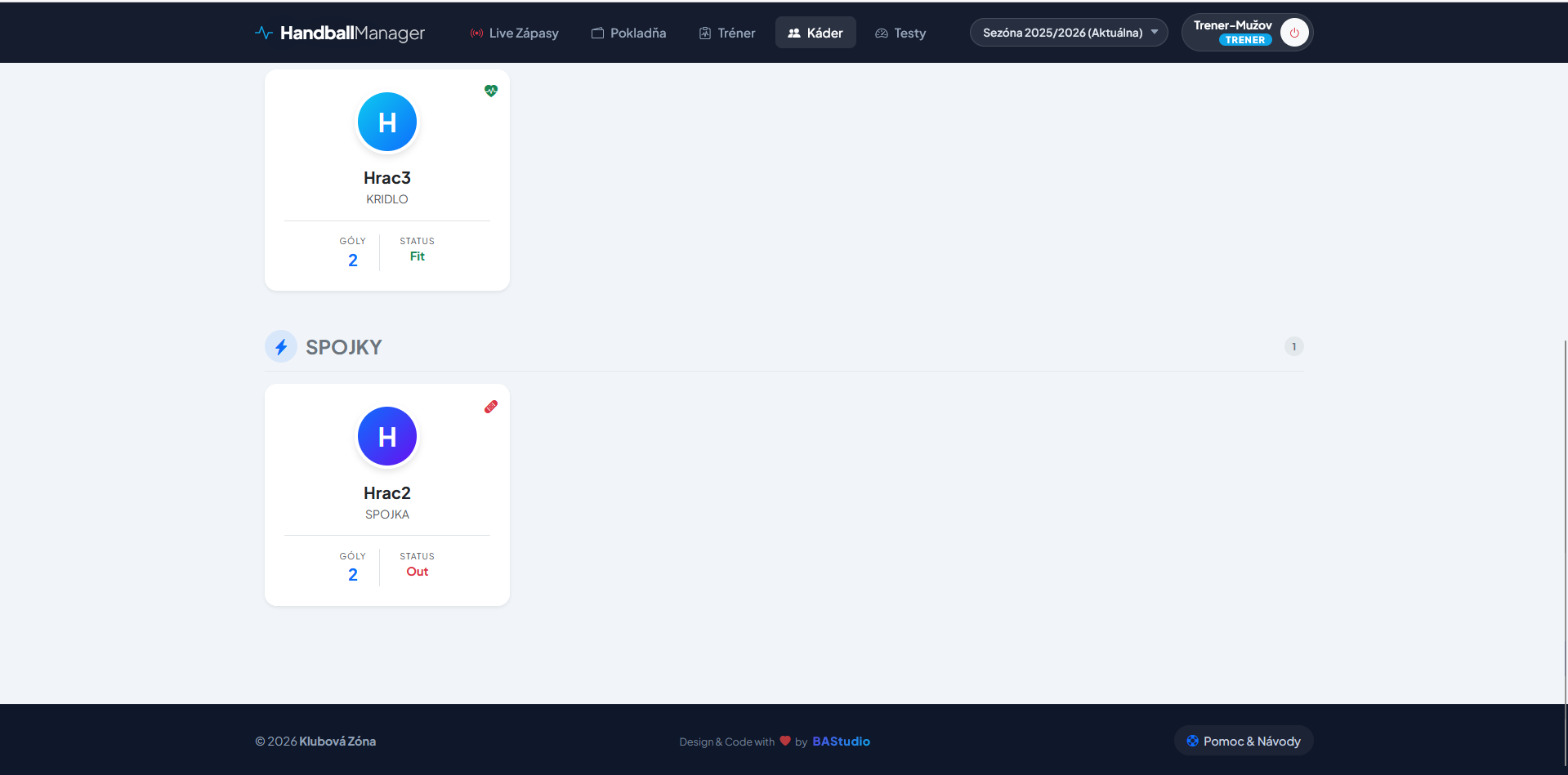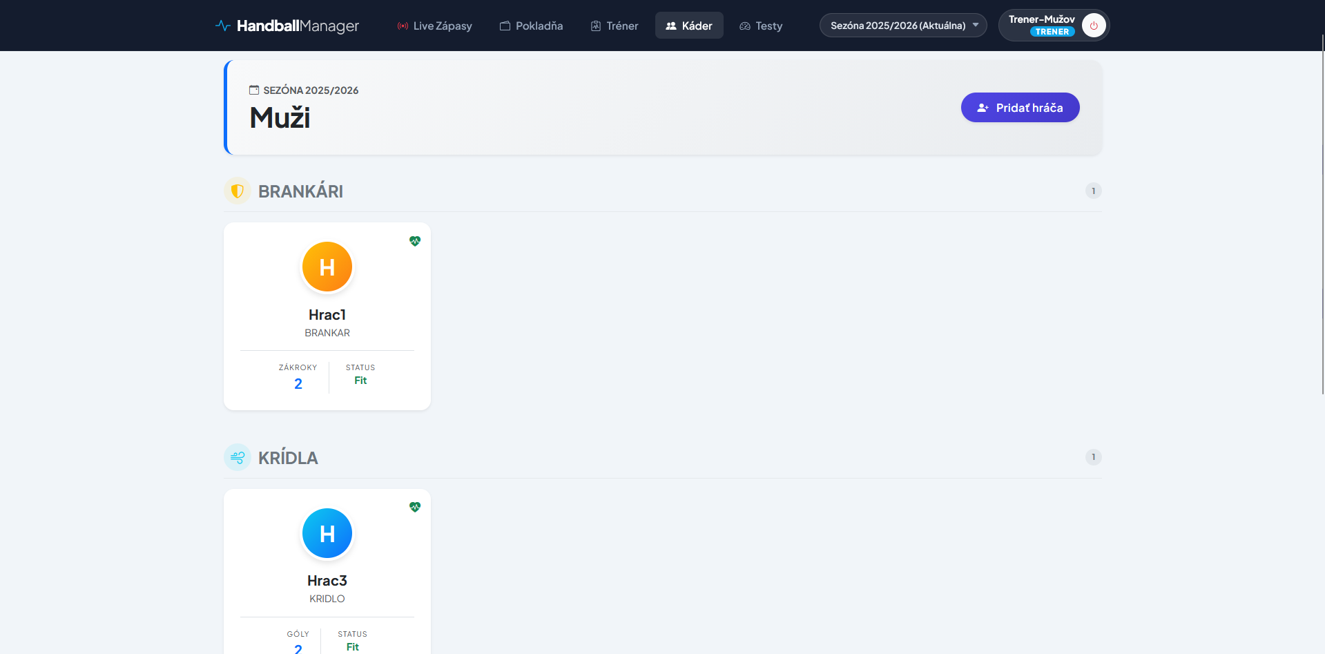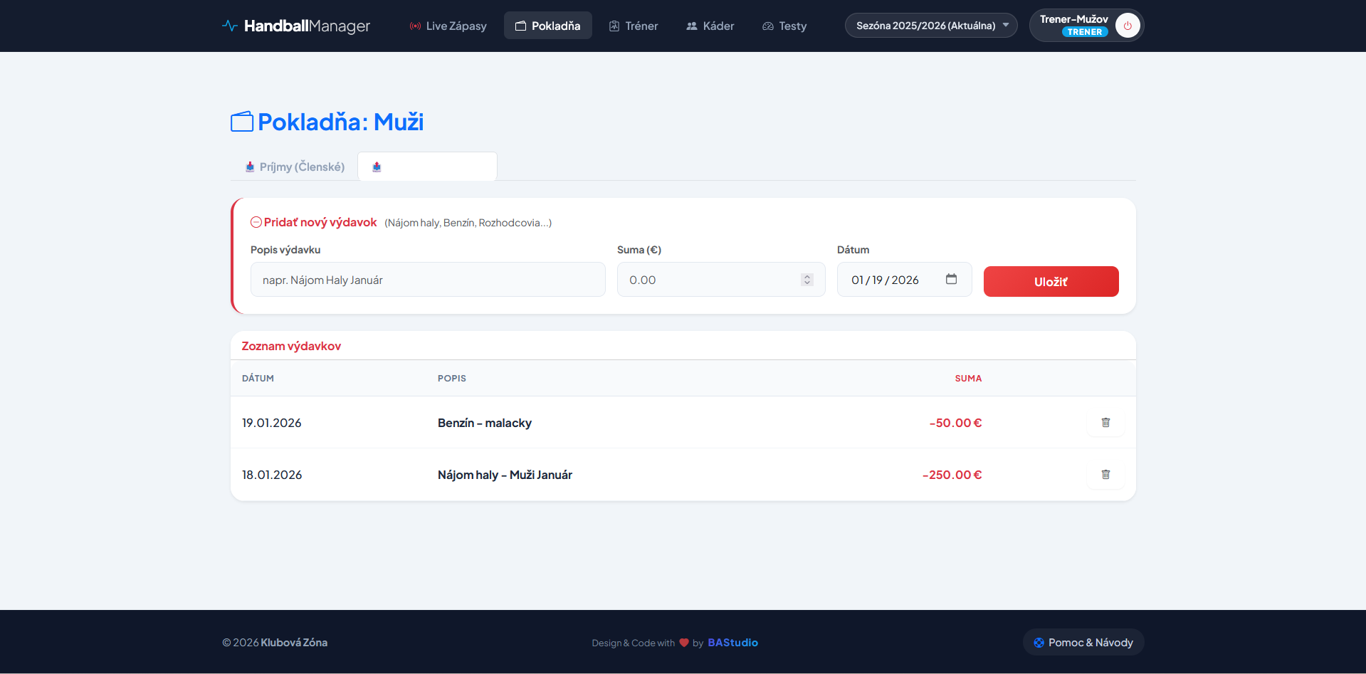 Aj tréner potrebuje vidieť, či majú hráči zaplatené. Plus možnosť evidovať tímové náklady (benzín, hala).
