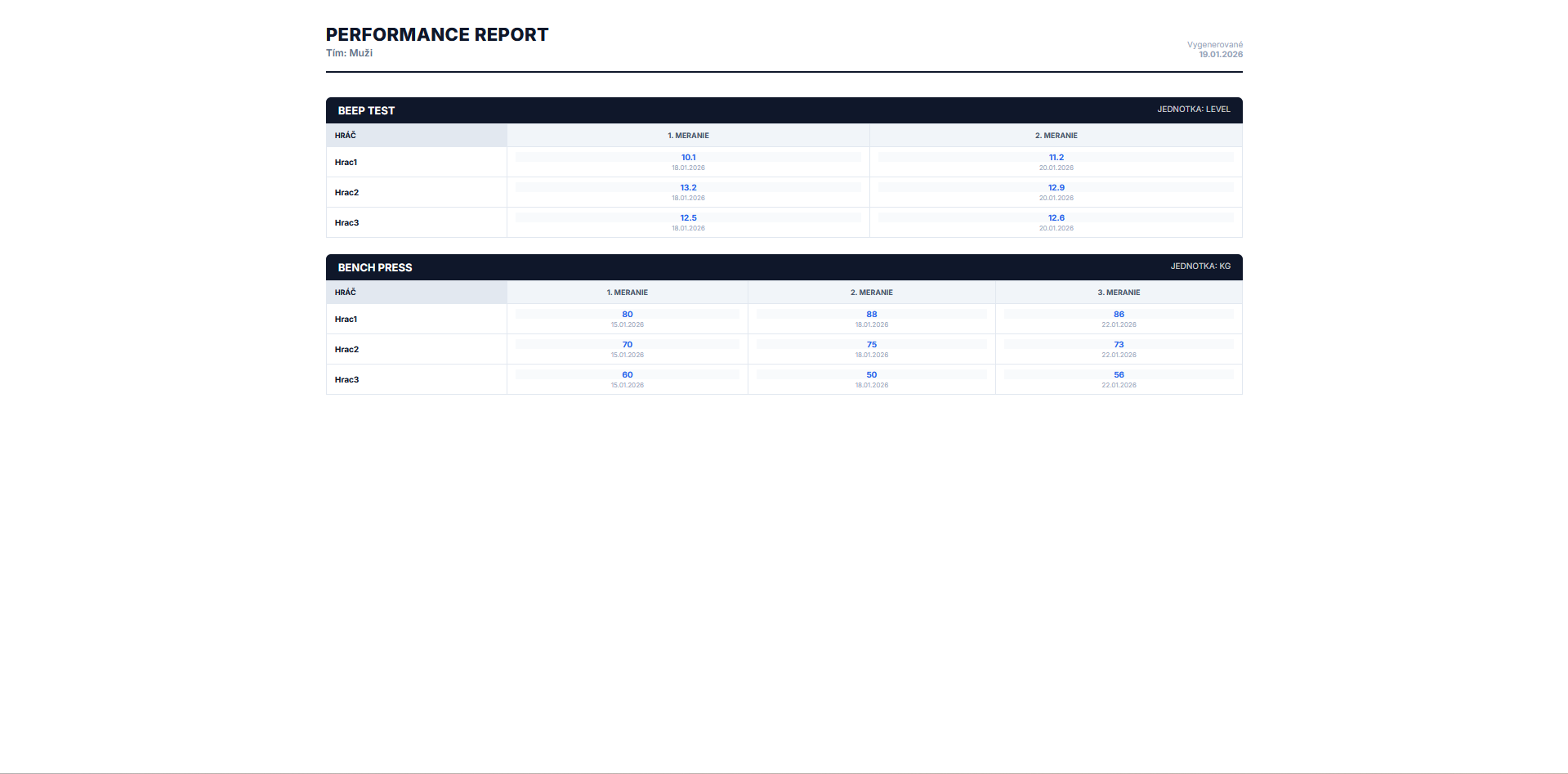 Všetko, čo sa stane na ihrisku, sa ukladá. Sledujte progres, porovnávajte sezóny a robte rozhodnutia na základe faktov.